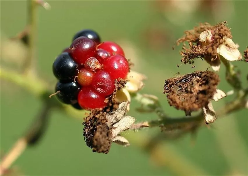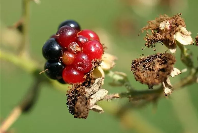 Zur Beseitigung der Winterverstecke der Gallmilben sind die Brombeerranken im Herbst möglichst weit zurückzuschneiden.