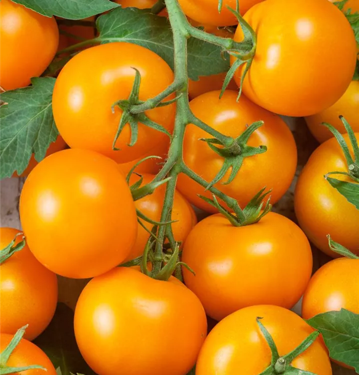 Die Tomate (Solanum lycopersicum) bildet Früchte, die aromatisch schmecken und bereits ab Juli geerntet werden können. Für das optimale Wachstum der Tomate werden ein sonniger Standort und durchlässiger, nährstoffreicher Boden benötigt.